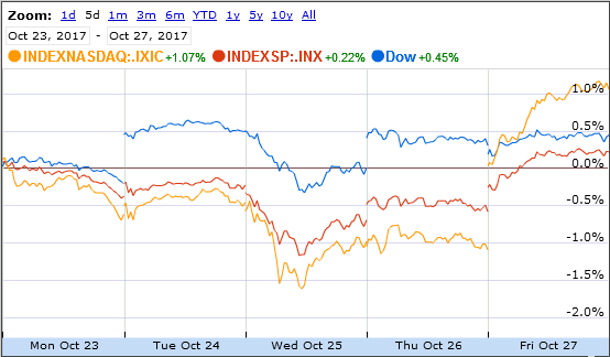 Stocks turned in their fifth straight week of gains with a modest rise this week. Through the Friday close, the Dow rose 0.4% and the S&P and Nasdaq both rose 0.3%. Bond prices moved sharply lower and yields higher. Commodity prices were up across the board, with gold rising 1.7%. Oil prices were higher by 1.9% to close at $58.35 per barrel. The international Brent oil moved up to $65.04.